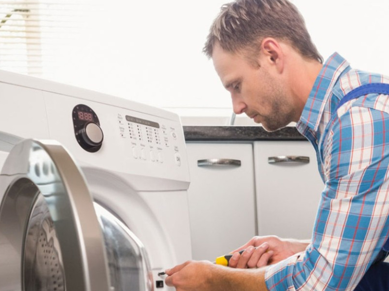Foto de Técnico arreglando lavadora